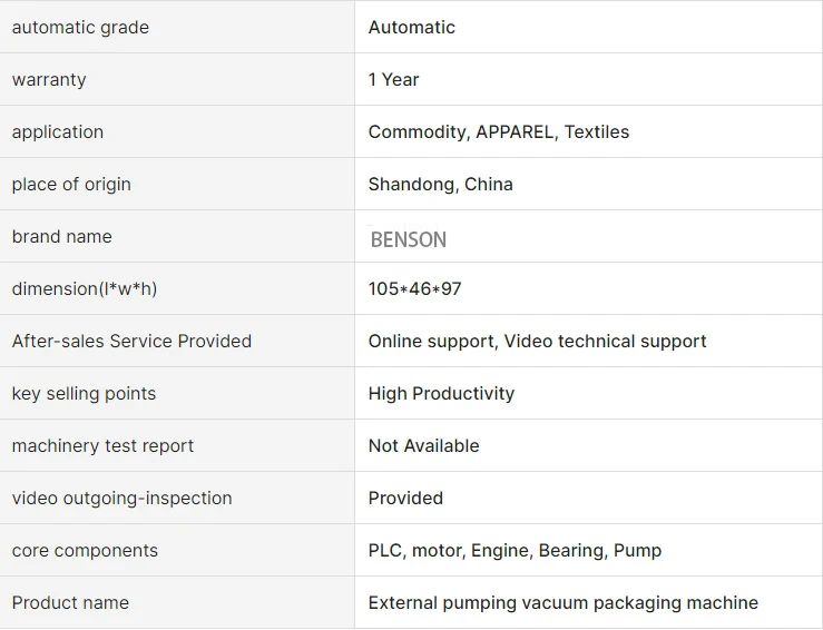 外真空的工作方式,能有效清除包装内部的空气,防止产品氧化、霉变和虫害,延长产品贮藏寿命,保持产品的质量和外观。